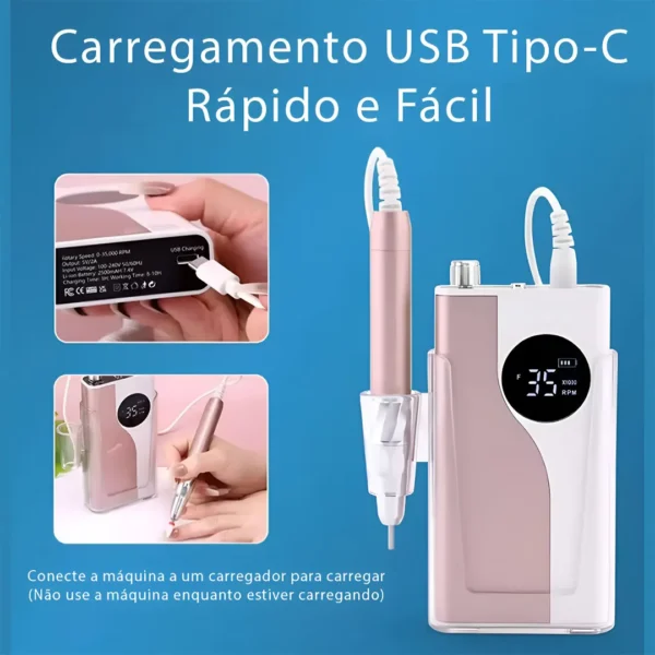 Lixadeira Elétrica Portátil 40000rpm com Base de Carregamento